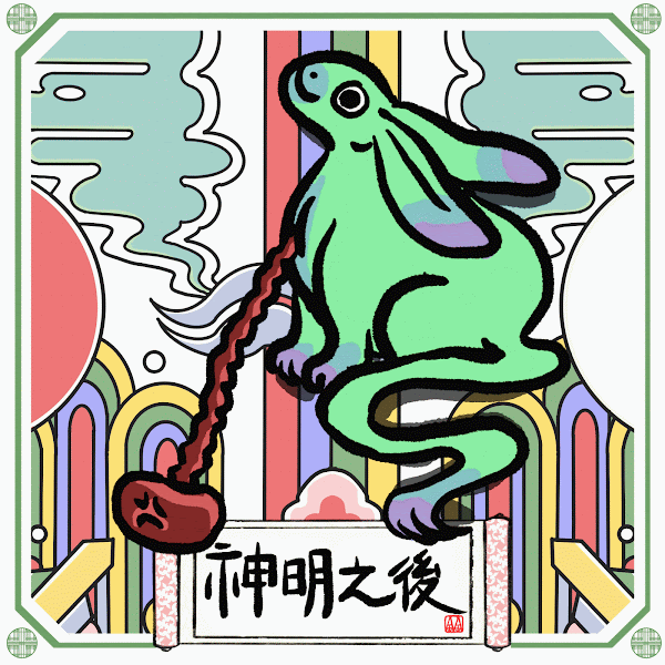 "말씀하신 것처럼 저의 괴물 시리즈는 오픈씨와 파운데이션 두 플랫폼을 통해 소개하고 있는데요. 괴물들의 모습을 다른 두 면으로 보여드리고 있습니다. 먼저 모색심명을 비롯한 오픈씨의 한국 전통 괴물 시리즈(Korean Fantastic Creatures)는 단청을 배경으로 카드형식으로 보여드리고 있습니다. 각 단청은 속성(바람, 물, 땅 등)에 따라 다른 배경을 하고 있고, 괴물들과의 만남이 특별해질 수 있도록 각 괴물들은 저마다 능력이나 부적과 같은 행운, 복, 사랑 등을 가져다줍니다. 현재 콜라보 작품을 제외하고 총 14마리의 괴물이 민팅되어 있습니다. 이 컬렉션에서는 우렁각시 같은 친숙한 이야기부터 걸어다니는 돌 자이, 내장을 배 밖으로 뺄 수 있는 능력을 가진 토끼 같은 괴물 신명지후, 뿔이 셋 달린 삼각록 등 다양한 괴물들의 이야기를 만나볼 수 있습니다.